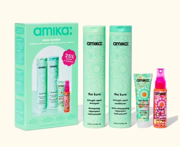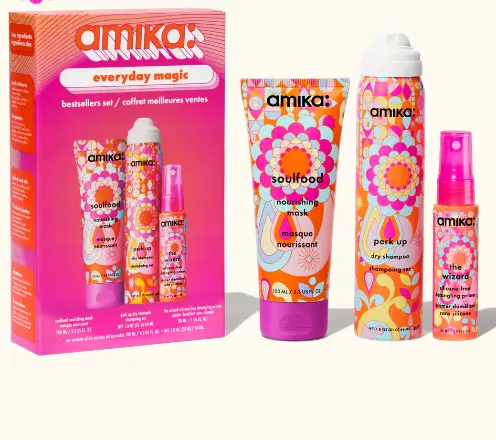 Amika is a haircare brand that sells shampoos, conditioners, styling creams, and other hair products. The brand is known for being affordable, fun, and accessible.